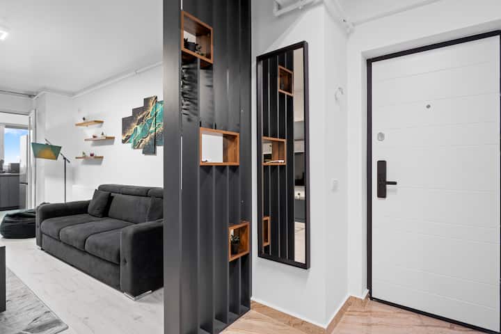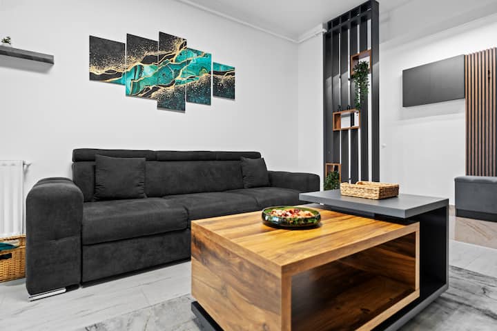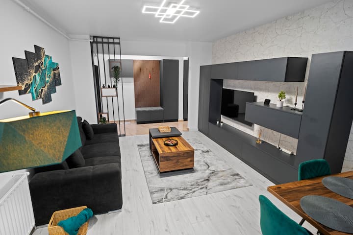 Minimalistický zelený a sivý byt