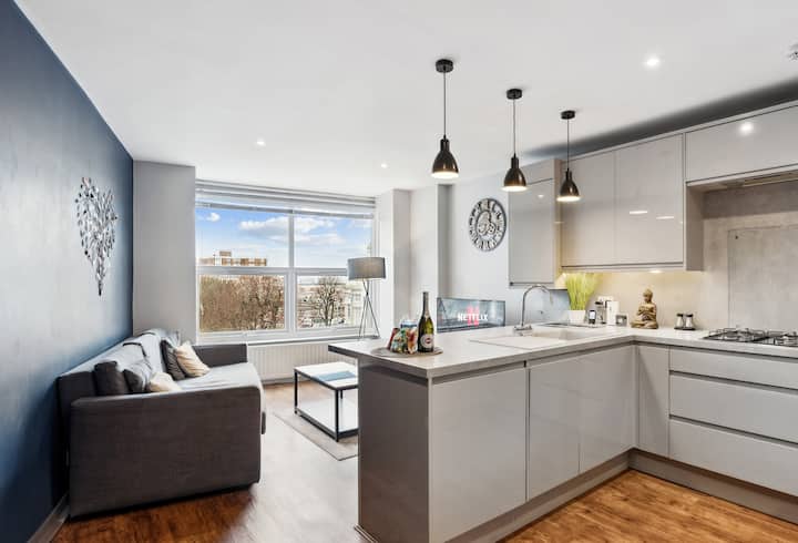 Vitajte v našom milovanom bývaní „Bright Gem by the Sea“ - svojom dokonalom útočisku na pobreží v srdci Brightonu Central! Tento krásny a moderný apartmán s dvoma spálňami (až pre 6 osôb) sa môže pochváliť bezkonkurenčnou polohou.