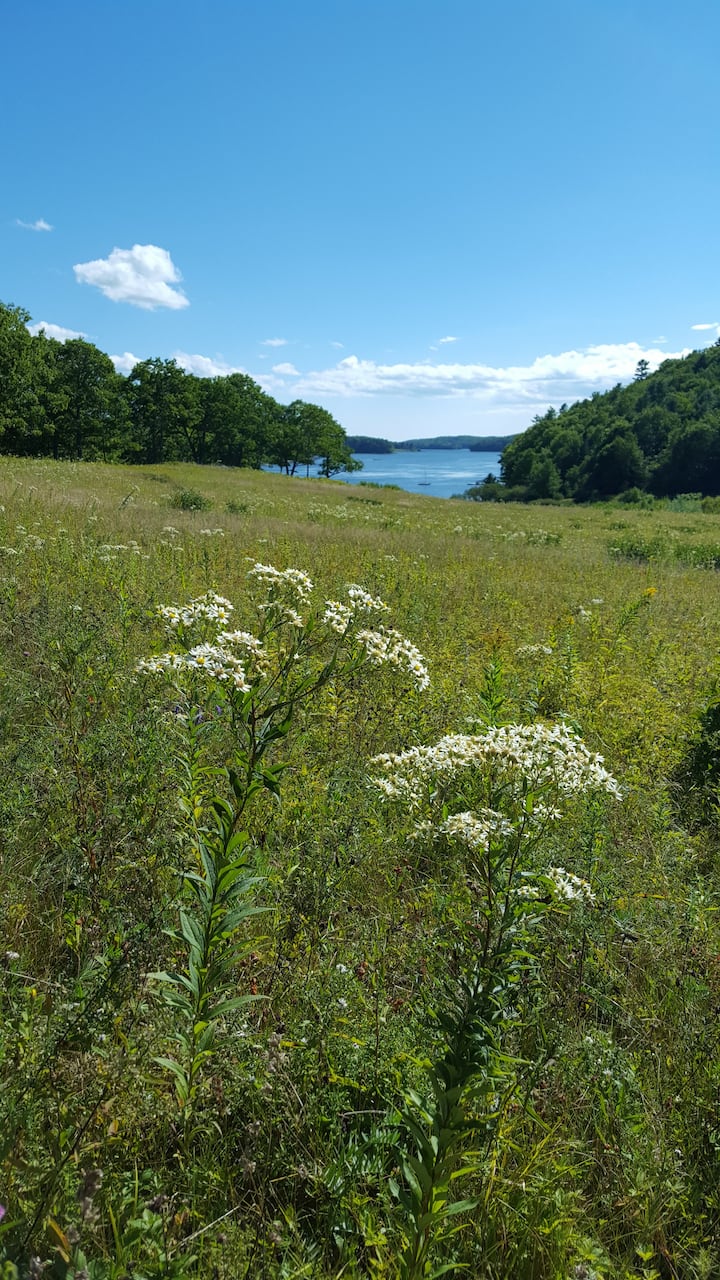 CHATA sa nachádza na pozemku s rozlohou 30 akrov v Edgecombe v Maine s výhľadom na prílivovú rieku Cross River, ktorá sa vlieva do väčšej rieky Sheepscot. CHALUPU sme postavili v roku 1999 so skupinou priateľov a užili sme si pokoj a pokoj tohto priestoru počas všetkých tých rokov. Keď sme žili v Massachusetts, na jesenné víkendy a počas letných prázdnin sme sa dlhé roky ubytovávali v chate. Postupom času sme predali náš dom v Massachusetts a postavili sme si trvalejší dom v Maine. CHATA je stále využívaná našou rodinou, priateľmi a hosťami Airbnb. Život v CHALUPE je pokojný a súkromný – ale poloha je pozoruhodne prístupná k trom veľkým dedinám v Maine: Wiscasset, Boothbay Harbor a Damariscotta. Veľmi obľúbená POBREŽNÁ BOTANICKÁ ZÁHRADA V MAINE: http://www.mainegardens.org/ je len kúsok odtiaľto po ceste Rt. 27 smerom na Boothbay. Veríme, že toto leto prídete a ubytujete sa v chate The CABIN a vychutnáte si pokojné prostredie na pobreží Maine.