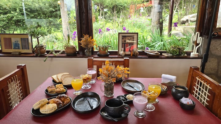 Výhľad do záhrady, vírivka, garáž, raňajky
