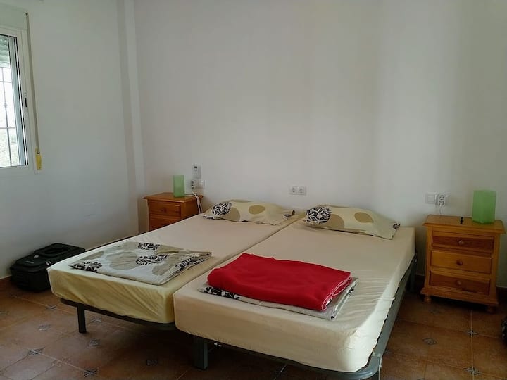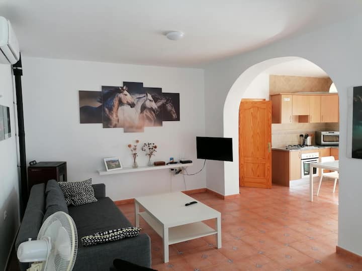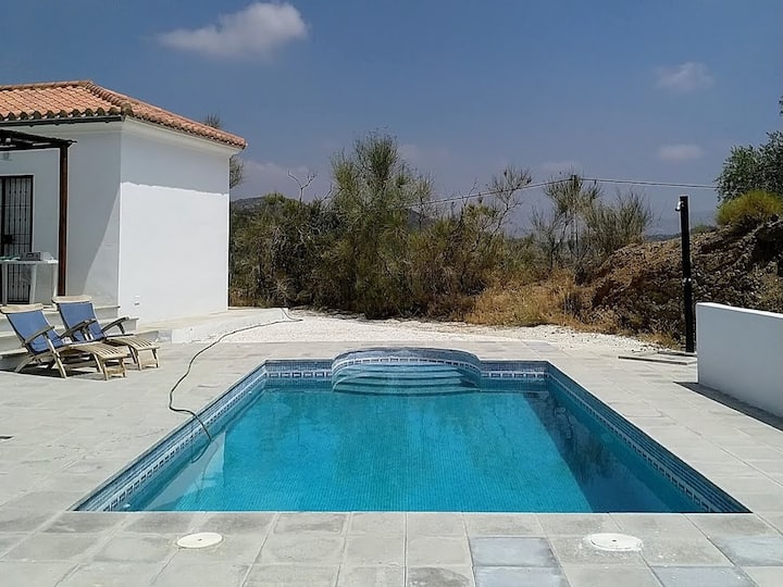 Tento očarujúci dovolenkový dom v Almogíi, ktorý sa nachádza na 2,5 hektároch pokojnej prírody, je určený na odpočinok a relaxáciu. S jednou spálňou, plne vybavenou kuchyňou a príjemným obývacím priestorom je to príjemné útočisko pre páry, ktoré hľadajú pokojný únik. Súkromný bazén s vonkajšou sprchou ponúka ideálne miesto na osvieženie, zatiaľ čo pergola poskytuje tieň, aby ste si mohli vychutnať zlaté západy slnka. Parkovanie, klimatizácia a zariadená záhrada.