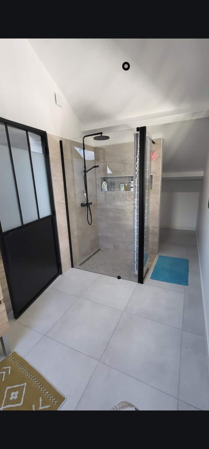 Potom vás privíta salónik s katedrálou (56 m ²) so 4 arkýřovými oknami s výhľadom na záhradu. Budete mať svetlo za každého počasia a príjemný pocit otvorenosti a priestoru. K dispozícii je televízor, Wi-Fi a zvukové pripojenie na strop.