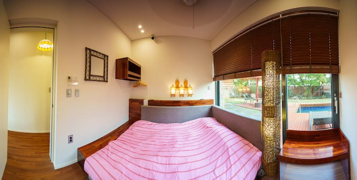 Je to súkromná vila s bazénom a nezávislou stavbou s krásnou prírodou Jeju.