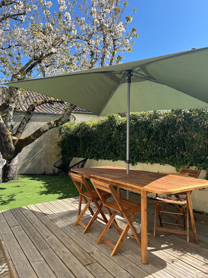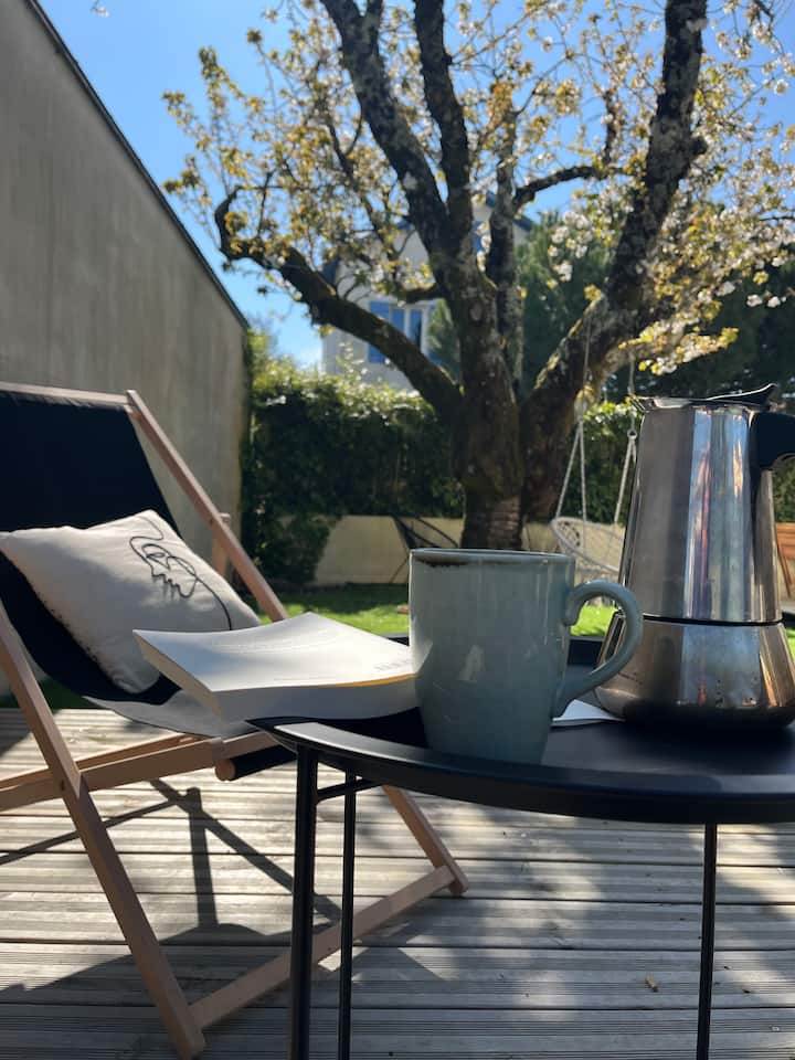 Exteriér je malým útočiskom pokoja. Hluk mesta, ktorý je však v okolí, nebude rušiť váš pokoj. Ležadlá, kreslá, vonkajšia posteľ na spanie, vankúše: na slnku alebo v tieni majestátnej čerešne je všetko navrhnuté tak, aby vám umožňovalo odpočinok, čítanie (nechali sme vás čítať!), jedlo vonku, všetko bezpečné pre vaše deti, záhrada je uzavretá.