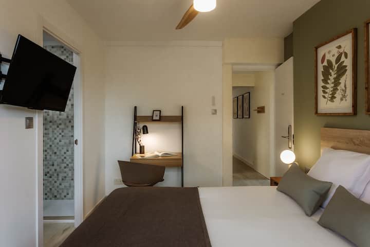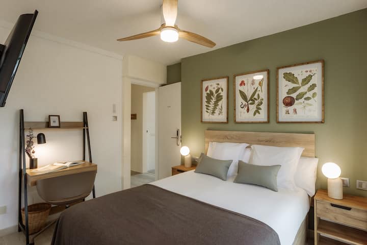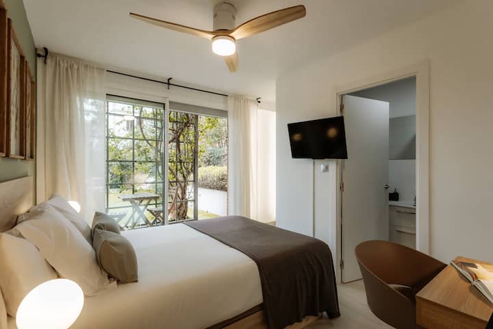 Vitajte v apartmáne Trèvol v Clubhouse Fargas! Priestranné útočisko so zemitými tónmi, zelenou, drevenou a jemnou sivou eleganciou s prírodou. Súkromná terasa je spojená so záhradou, ktorá napĺňa priestor svetlom a ponúka pokojný kútik na oddych. Apartmán Trèvol s elegantnou vlastnou kúpeľňou kombinuje pohodlie a šarm v pokojnom prostredí colivingu.✨