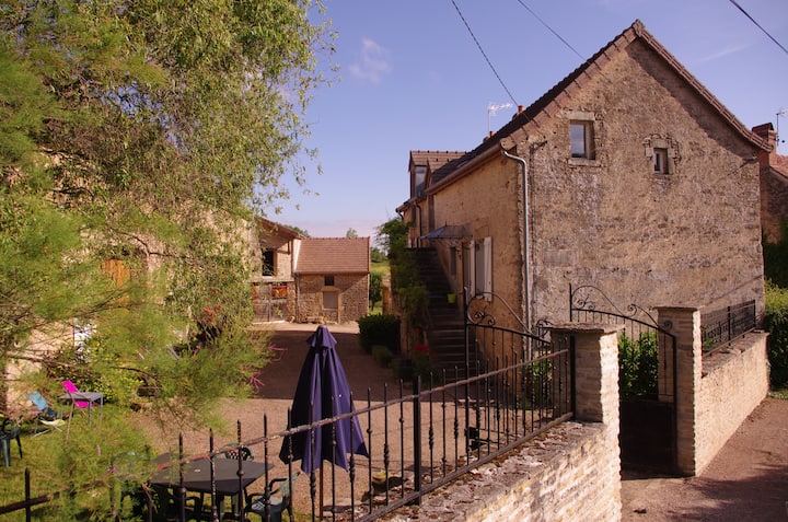 V malej dedinke s 90 obyvateľmi, tichá, v srdci Auxois, hradov Burgundska, syra Epoisses, bitky pri Alesii.