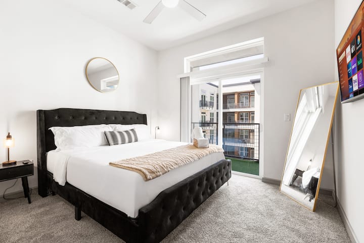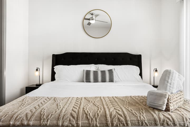Modern King 1BD, Grand Balcony, Pool, Free Parking