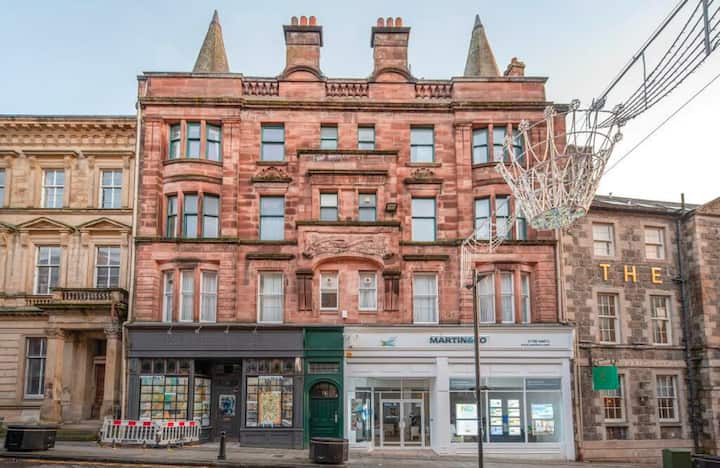Vitajte v The Scotts Suites, krásne zrekonštruovanom luxusnom apartmáne s 3 spálňami a 3 kúpeľňami, ktorý sa nachádza na historickej ulici King Street v Stirlingu – jednom z najznámejších a najcentrálnejších miest mesta.