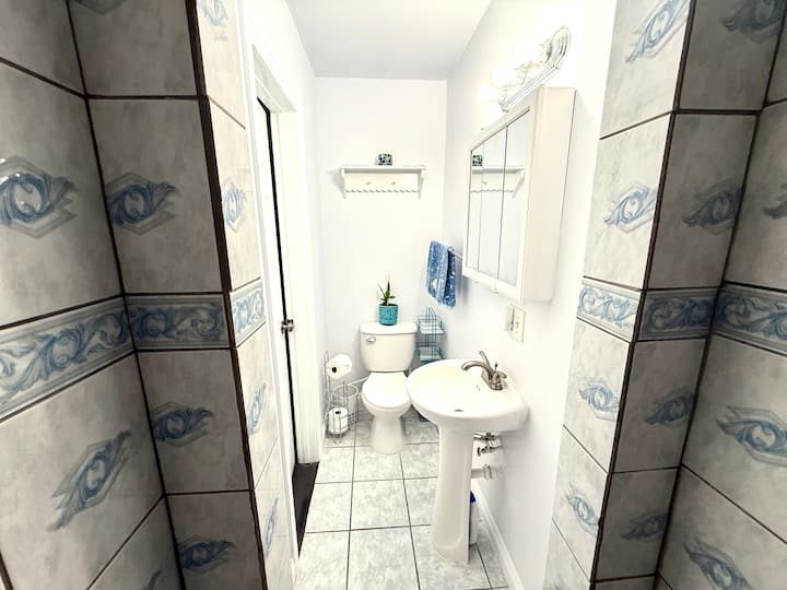 This place has a half bathroom that’s connected to your room.
