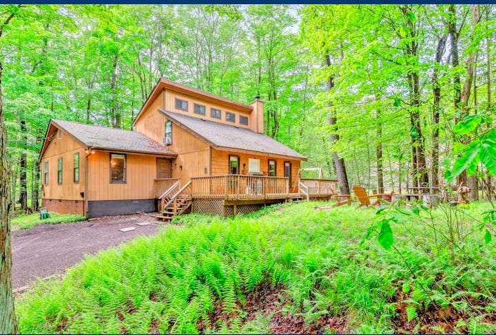 Rustikálny glam pôsobí odľahle...a napriek tomu sa nachádza v srdci pohoria Poconos a budete mať ideálnu polohu, aby ste si užili slávne miestne lyžovanie na severovýchode Pensylvánie, turistiku svetovej úrovne, rafting a vodné parky! Užite si deň dobrodružstva a potom sa vráťte do rustikálnej horskej oázy vašej rodiny, kde sa môžete najesť, oddýchnuť si a vytvoriť si spomienky.