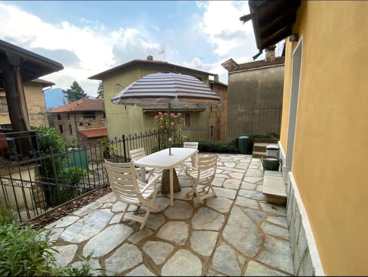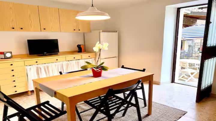 Po návrate do kuchyne sa potom môžete rozhodnúť, či si vychutnáte obed alebo večeru na krásnej VONKAJŠEJ TERASE so stolom a stoličkami, ktoré sú pripravené privítať vás. Dáždnik vás zatieni počas popoludňajších hodín.