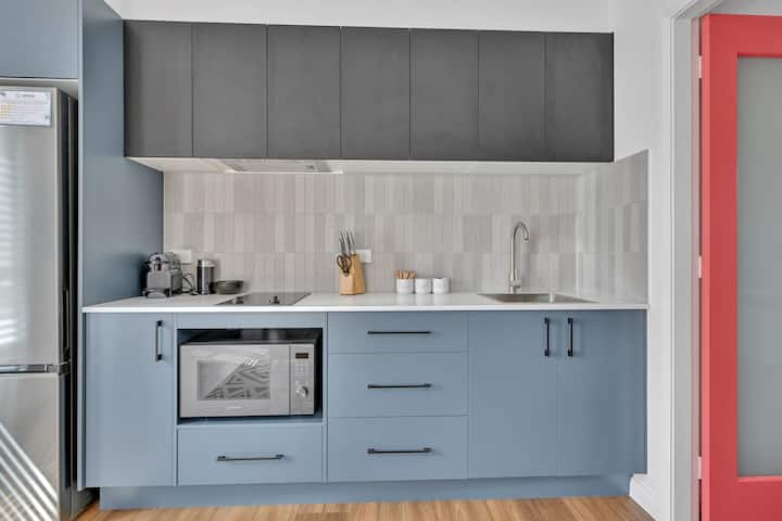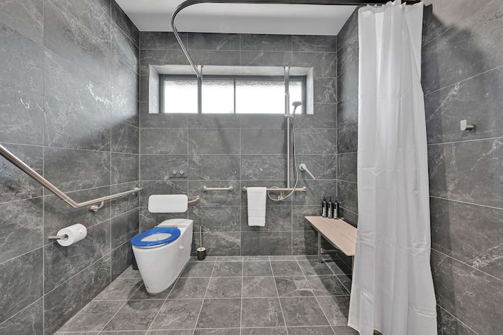 Užite si bezproblémový pobyt v tomto 1-spálňovom apartmáne v The Mac Orange. Apartmán bol navrhnutý tak, aby bol bezbariérový s bezbariérovým prístupom, širokými dverami a bezbariérovou sprchou s držadlami. Štýlový priestor zahŕňa spálňu s manželskou posteľou King, dobre vybavenú kuchyňu s kávovarom Nespresso, útulný obývací priestor, práčovňu v jednotke, bezplatné Wi-Fi pripojenie a extra široké parkovanie. Mac sa nachádza len pár minút od najlepších reštaurácií a vinárstiev s bezkontaktným príchodom a nonstop podporou.