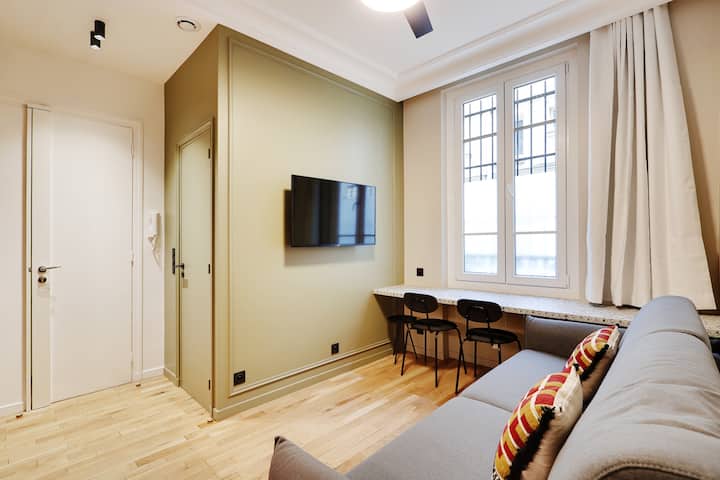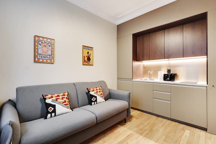 Prémiový apartmán zrekonštruovaný architektom sa nachádza v 18. parížskom obvode. Dizajnový nábytok, plne vybavená talianska kuchyňa, čisté povrchové úpravy. Štýlová a príjemná atmosféra, ideálna na pobyt v trvaní 1 až 10 mesiacov. Len 10 minút chôdze od Sacré-Coeur a v blízkosti všetkých obchodov, kaviarní a dopravy. Perfektný pied-à-terre na prežitie Paríža s pohodlím a štýlom.