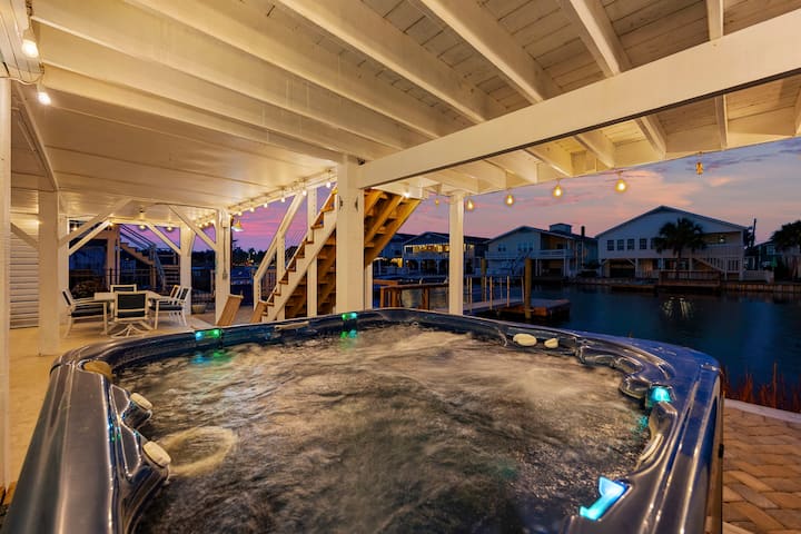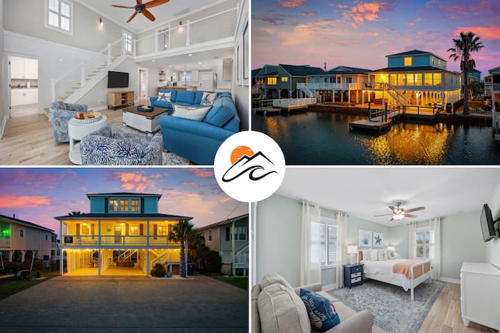 Camp Coquina je svetlé a štýlové 4Br, 5BA pobrežné útočisko v Cherry Grove pre 14 osôb, s prírodnými drevenými podlahami, bohatým slnečným svetlom, súkromným prístaviskom a vírivkou.