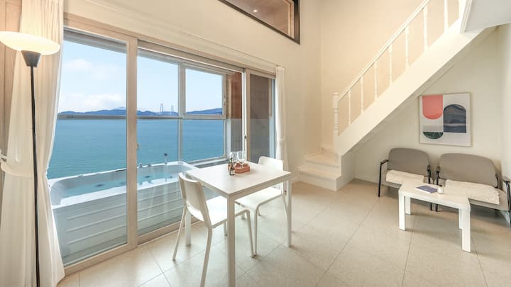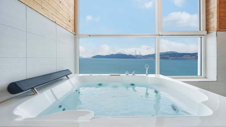 Yeosu Jangsu-ri Mansion Ocean View Emotional Pension! Užite si bazén, kúpele, kaviareň, gril a užite si krásny západ slnka a výnimočný čas!