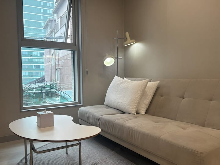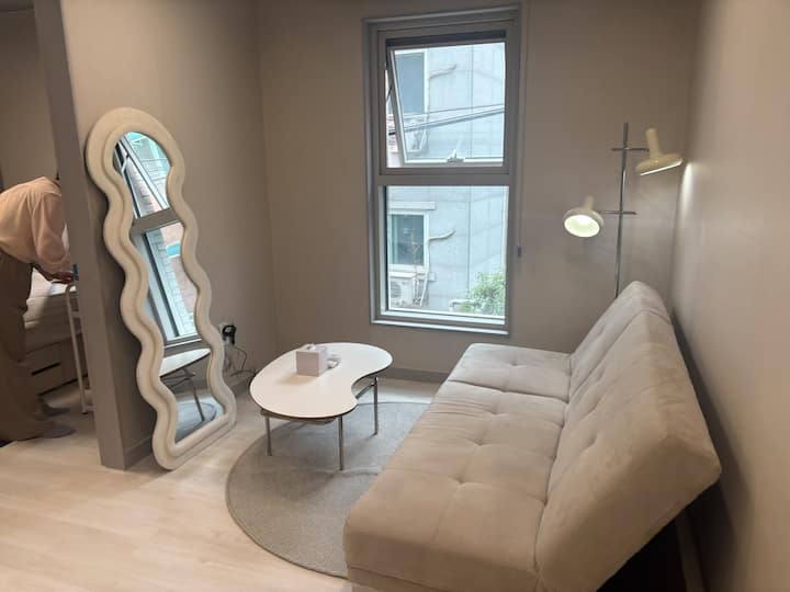 #Nový#Soul#Sinchon#Hongik univerzita 7 minút#Myeong-dong/Kyungbokgung/Kwangjang trh/Seoul Station/Jongno 15 minút #Strecha #Úschova batožiny