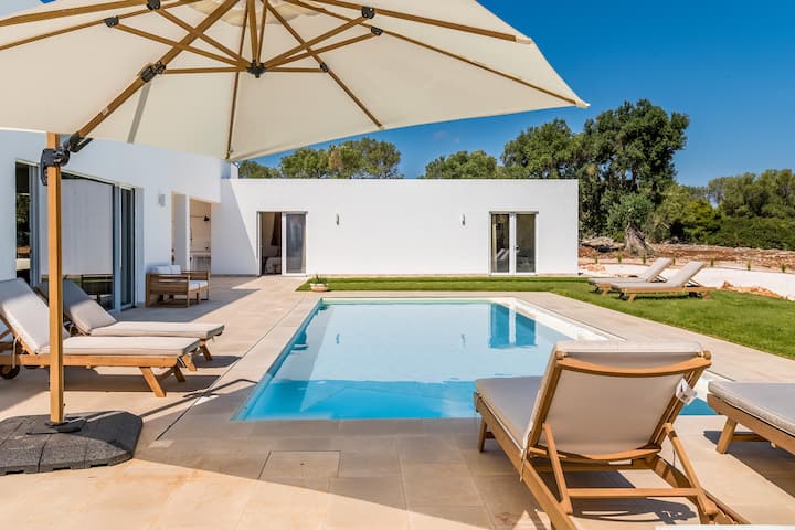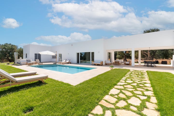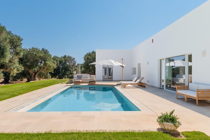 Villa Nicola'is a brand new modern villa with contemporary design and Mediterranean style, perfect as aluxury vacation villa in Puglia, in the area between Valle d' Itria and Alto Salento.