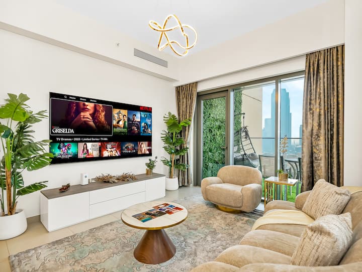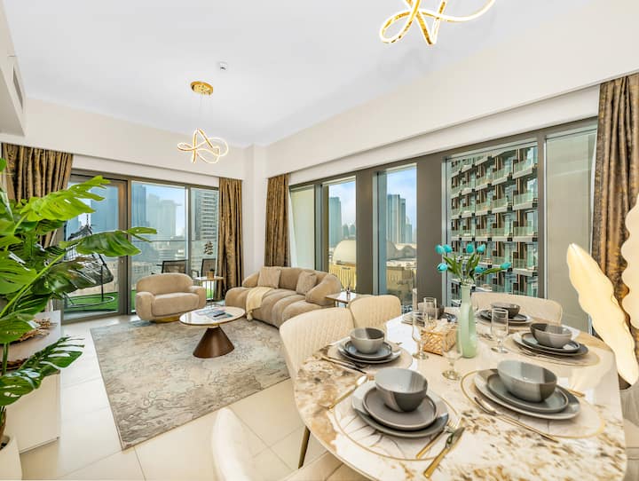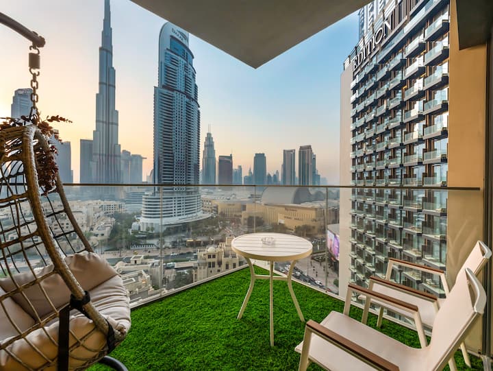 Posilňovňa/bazén/výhľad na Burj a fontánu/oproti Dubai Mall