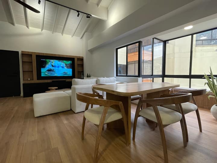 Vitajte vo svojom luxusnom penthousovom apartmáne v Laureles v Medellín, kde sa moderný štýl stretáva so živým mestským životom! Tento novozrekonštruovaný domov je ideálny pre hostí, ktorí hľadajú energiu, pohodlie a trochu pôžitku.