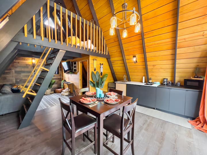 Vstúpte do Afriky, jedinečného dreveného domu v tvare A, ktorý je navrhnutý tak, aby vás preniesol do srdca africkej savany – priamo v Lajas v Portoriku. Tento krásne vytvorený zrub je plný charakteru, textúr a prírodných detailov, ktoré vytvárajú exotický a útulný oddychový priestor.