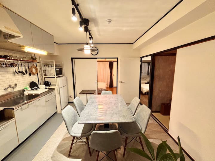 3DK/5 lôžok/58 m²/8 hostí/Kuromon, Namba, Dotonbori
