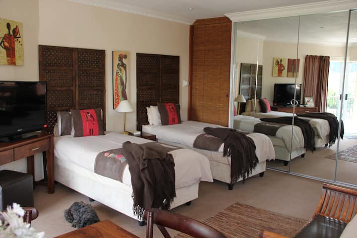 Som vydatá matka dvoch detí a prevádzkujem ubytovanie s raňajkami v našom krásnom dome v Beaulieu v juhoafrickom Midrande. Hostíme prevažne firemných klientov z celého sveta a z miestnej oblasti a radi sa pravidelne stretávame s novými ľuďmi. Máme veľký počet ľudí, ktorí zostanú na noc alebo dve, alebo dokonca na týždeň, ale máme aj veľký počet podnikateľov, ktorí potrebujú zostať mesiac, dva mesiace alebo dokonca rok. Máme skvelú kombináciu menších izieb pre ľudí, ktorí zostávajú na jednu noc, a potom niekoľko chalúp pre ľudí, ktorí potrebujú zostať na mesiac alebo dlhšie. Všetky izby majú vlastné kuchynské vybavenie a všetky majú vlastné vchody a prístup do našich pokojných záhrad. Všetky izby majú Wi-Fi. Tešíme sa, že Vás čoskoro ubytujeme!