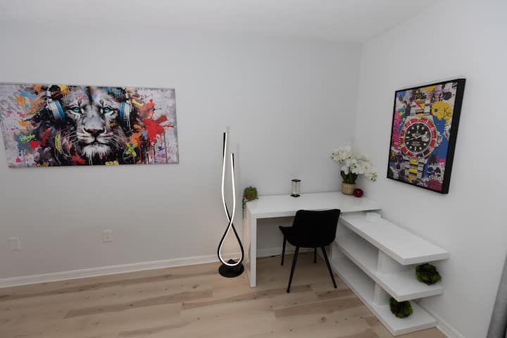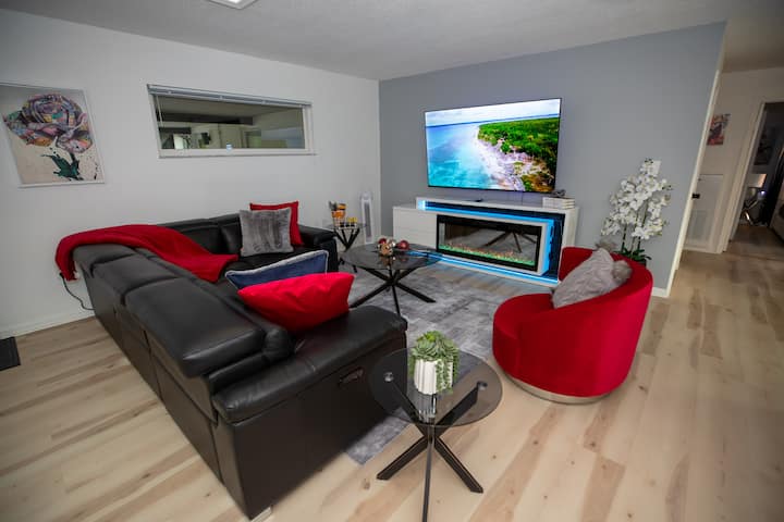 Vychutnajte si plný prístup k priestrannej a útulnej jednotke s dvoma spálňami a 1,5 kúpeľňou navrhnutej s ohľadom na pohodlie a komfort. Pripravte si lahodné jedlá s ľahkosťou v plnohodnotnej kuchyni vybavenej všetkými základnými vecami, oddýchnite si v pohodlnej obývacej izbe s rozkladacou sedacou súpravou a využite vlastný súkromný vchod pre jednoduchý a bezproblémový prístup.