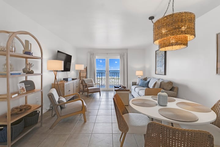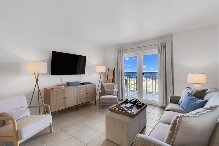 Kondomínium na pláži s výhľadom na záliv a poschodovými lôžkami