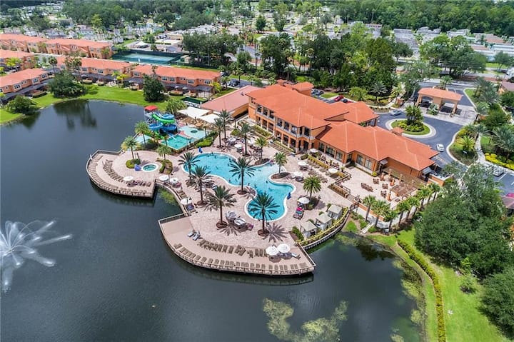 Náš nádherný 2 lôžkový dom DELUXE s 2 lôžkami sa nachádza v nedotknutom rezorte Regal Oaks, ktorý sa nachádza hneď za zábavným parkom Old Town a pár minút od Disney, obchodov, reštaurácií a ďalších. Vo vnútri nášho domu nájdete kombináciu obývacej izby/jedálne a kuchyňu so spotrebičmi z nehrdzavejúcej ocele a žulovými pracovnými doskami. Na poschodí sa nachádza hosťovská izba s dvoma manželskými lôžkami a jedna priestranná hlavná izba s kancelárskym stolom a výhľadom na krásnu záhradu (žiadne izby nemajú koberec).