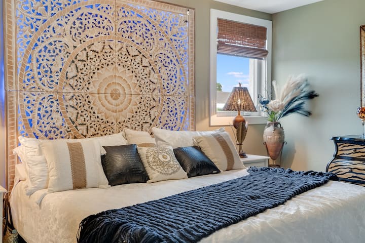 Po dni hrania golfu, rybolovu a objavovania mesta môže byť čas ísť spať. Uvoľnite sa v luxusnom pánskom obleku. Priestorová hlavná spálňa je vybavená pohodlnou manželskou posteľou s indonézskym čelom a náladovým osvetlením, bambusovými chladiacimi plachtami a luxusnými chladiacimi vankúšmi a množstvom úložných priestorov, vďaka čomu je ideálna na relaxáciu.