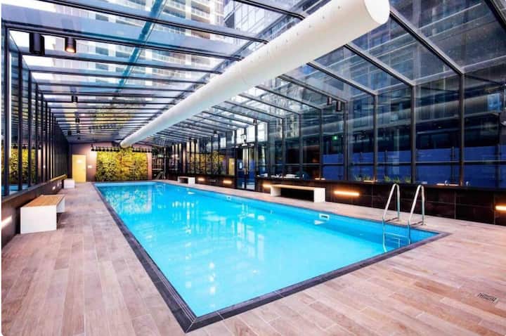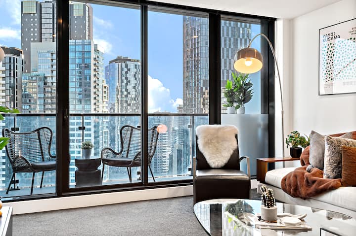 Elegantný štýl NYC 3SP|Balkón s výhľadom, bazén/posilňovňa + parkovanie