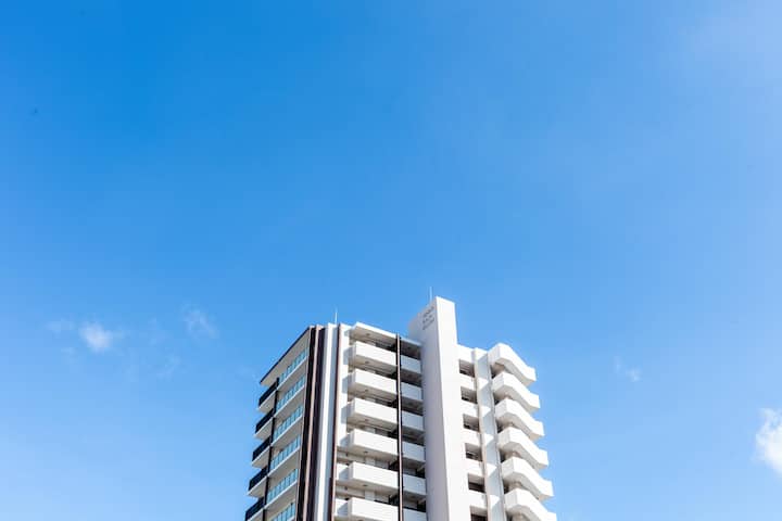 Priamo pred dedinou Kitachujo a nákupným centrom Rycom Aeon Mall je výhľad z 12. poschodia na modré a tiché more, ktoré sa rozprestiera za mestskými svetlami.