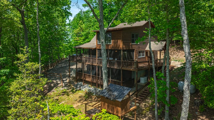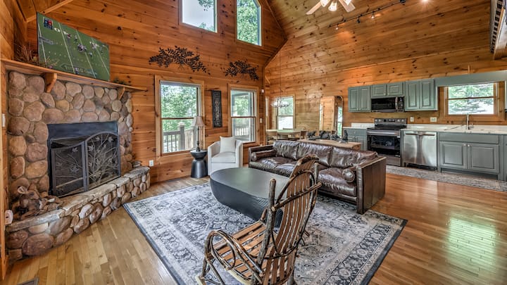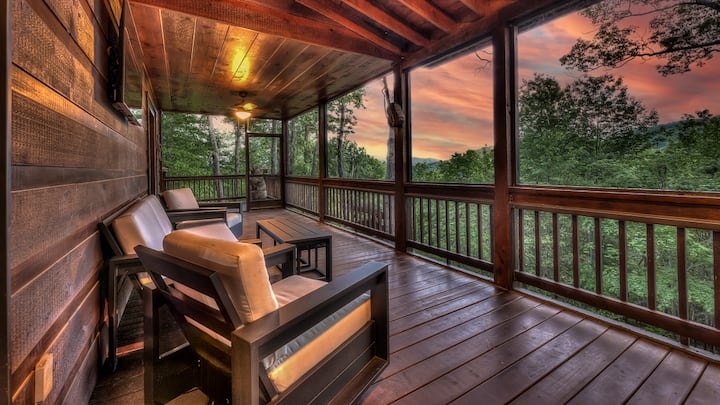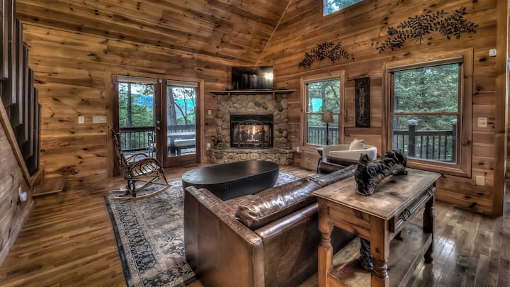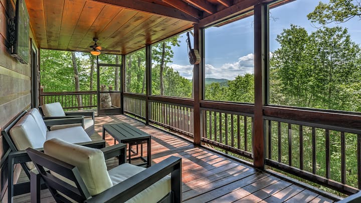 Luxusný rezort Mountain Melody s 3 spálňami a 3 kúpeľňami sa nachádza na vrchole Black Ankle Mountain v uzavretej komunite v srdci dobrodružnej oblasti Aska. Vychutnajte si nádherný výhľad na pohorie Blue Ridge, dizajnový interiér, kuchyňu šéfkuchára, apartmány s manželskou posteľou, herňu, vírivku a ohnisko. Blízko Blue Ridge, Ellijay a najlepších turistických chodníkov – ideálne na rodinnú zábavu alebo pokojný únik v prírode.