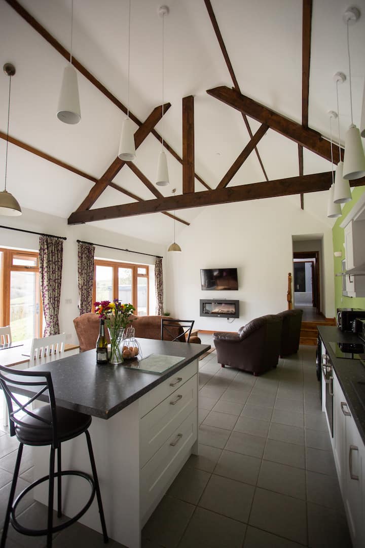 Perfektné prostredie pre oddych v vírivke s partnerom/priateľmi alebo rodinou. 2 Beacon View Barn sa nachádza v najpokojnejšej lokalite a stodola má všetko, čo potrebujete, aby ste si naozaj oddýchli, uvoľnili sa a vypnuli. Preskúmajte vidiek vlastným tempom pomocou prechádzok so sprievodcom, ktoré začínajú priamo od vchodu, a obdivujte výhľady vnútri aj vonku. Večerajte vonku s vedomím, že psy a deti sú v bezpečí v uzavretej záhrade, a potom sa ponorte do vírivky, kde si môžete pozerať hviezdy pri pohári vína.