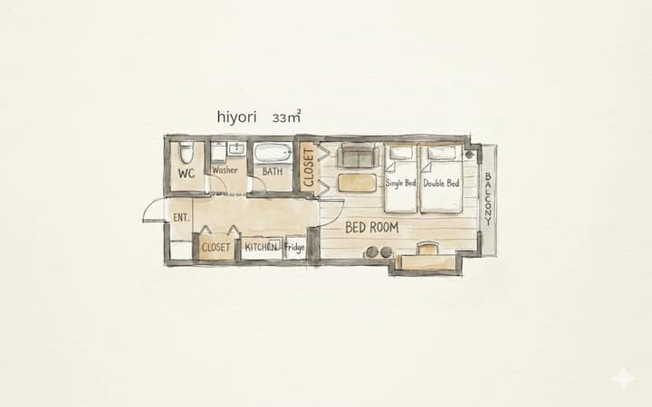 Pocit „cestovať ako miesto na bývanie“ je pre mňa prirodzený.S týmto vedomím som založil malý penzión s názvom Hiyori.