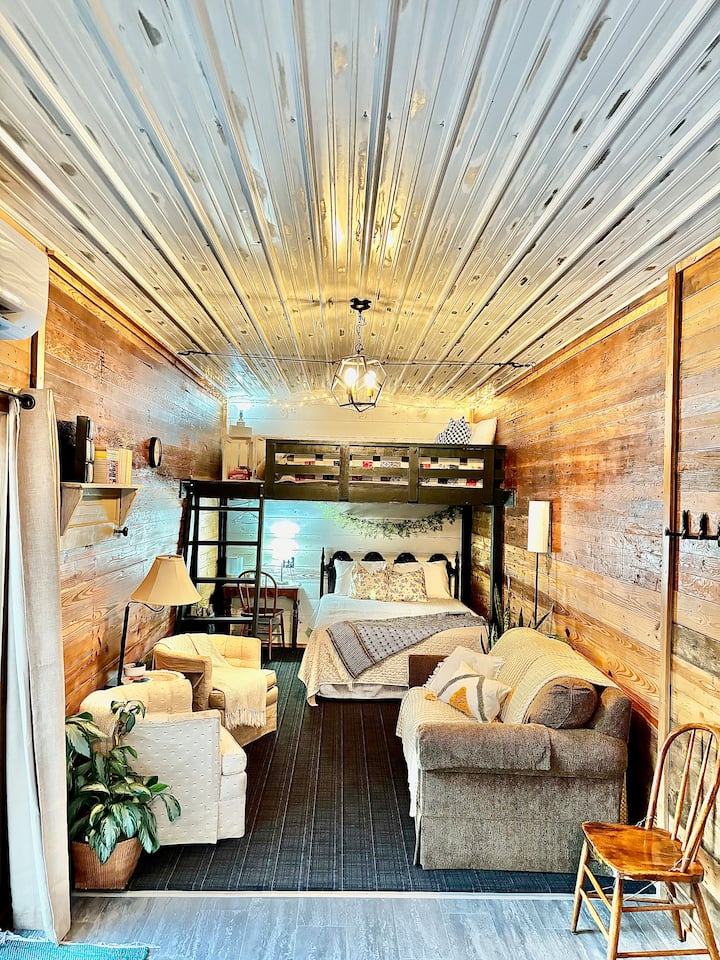 Baví ma hostiť ľudí a spravovať naše jedinečné vlakové autá! Bol to sen môjho manžela a mňa vziať pôvodne použité staré vlakové vozíky a zrekonštruovať ich - premeniť ich na pokojné, moderné, romantické dovolenkové priestory, ktoré si môžete vychutnať. Prvé vlakové auto bolo dokončené asi pred 5 rokmi, druhé bolo práve dokončené a je uvedené a k dispozícii. Momentálne pracujeme na treťom.