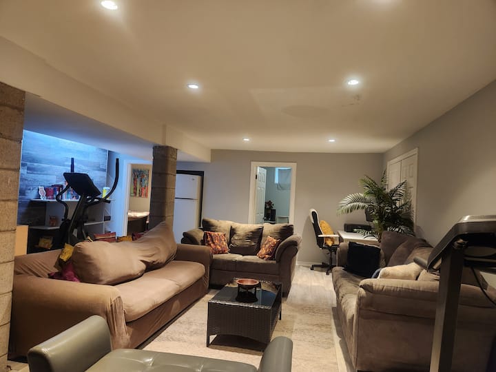 Pohodlný a útulný priestranný súkromný suterén s 2 spálňami!
