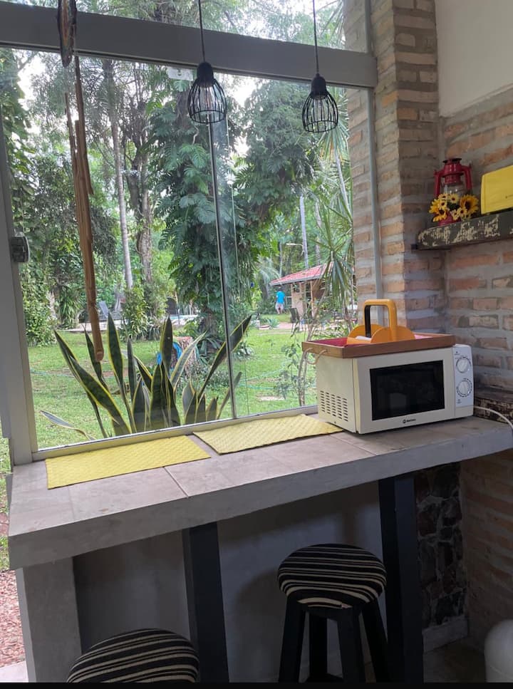 Mini dom San B, pokoj a bazén.