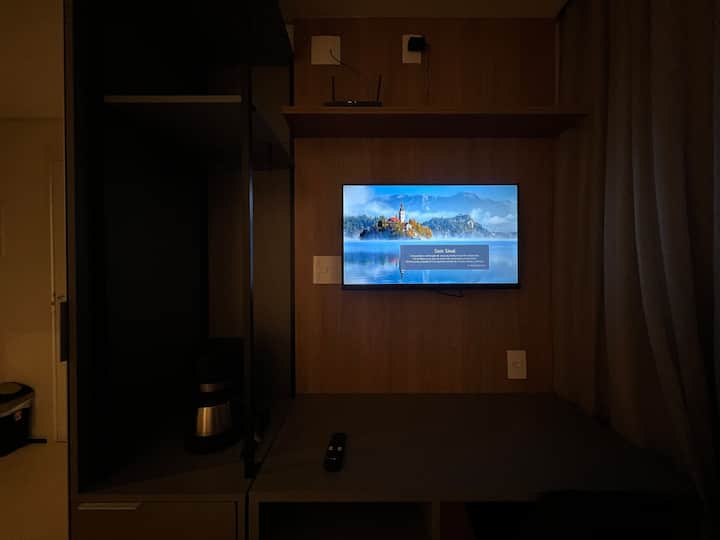 Štúdio s privilegovanou polohou v blízkosti staníc metra Mariana a Ana Rosa Vl, regiónu bohatého na obchody, banky a ďalšie. Štúdio v novootvorenej budove s zasadacou miestnosťou, práčovňou (platená, ceny si overte na mieste) a posilňovňou s úchvatným výhľadom. Štúdio vybavené kompaktnou kuchyňou na pohodlné varenie.