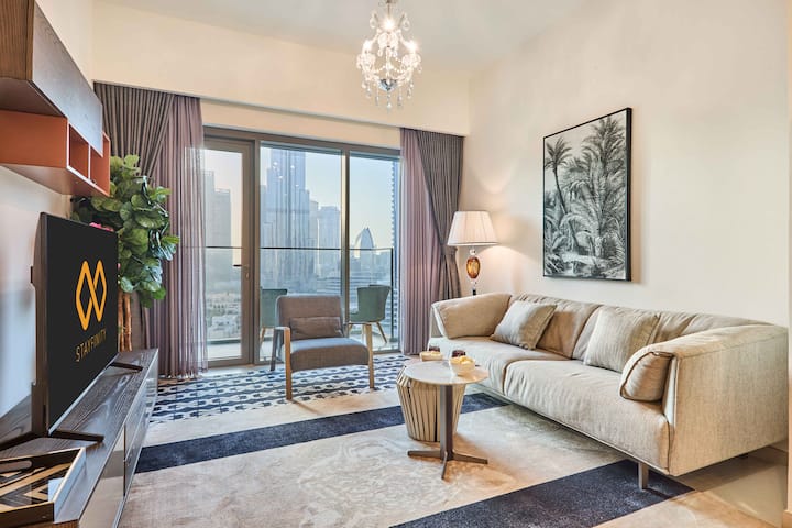 Rezervujte si pobyt teraz a zažite úchvatný výhľad na Burdž Chalífu, elegantný dizajn a vynikajúcu polohu v centre mesta zo svojho luxusného apartmánu Burj Royale 🌟.