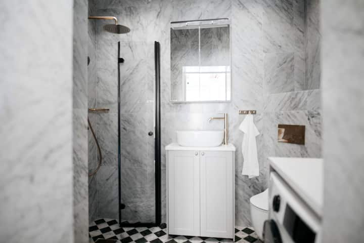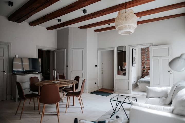 Tento novozrekonštruovaný apartmán kombinuje moderný škandinávsky dizajn s pohodlím a funkčnosťou. Má dve samostatné spálne, jednu so 160 cm širokou manželskou posteľou a druhú so 120 cm širokou posteľou, obe sú vybavené kvalitnou posteľnou bielizňou a jedna má vstavaný úložný priestor. Obývacia izba obsahuje rozkladaciu pohovku širokú 140 cm, ktorá poskytuje flexibilné usporiadanie lôžok až pre 5 hostí.