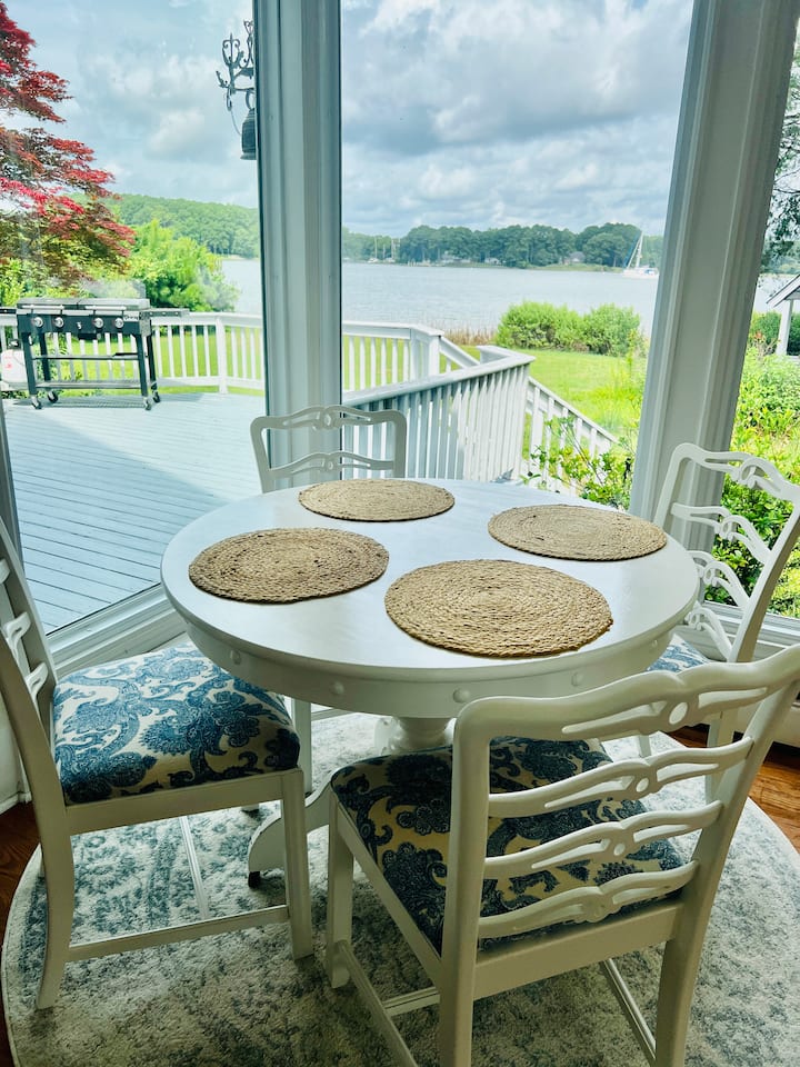 Vitajte v dovolenkovom dome Eastwinds – viktoriánskom dome z roku 1898 na East River v očarujúcom meste Mathews v štáte Virgínia. Toto ubytovanie s 5 spálňami a 3,5 kúpeľňami má plne zásobenú, novo zrekonštruovanú kuchyňu, zimnú záhradu, útulnú knižnicu a vysnívaný výhľad na rieku na 2 súkromných akroch. Vďaka prístavu, vonkajšej sprche a priestoru pre 10 osôb je ideálny na rodinné výlety alebo svadobnú dovolenku. Len 5 minút do mesta a 15 minút na pláže, čo dodáva tejto „poslednej veľkej americkej dynastii“ energiu tým najlepším spôsobom.