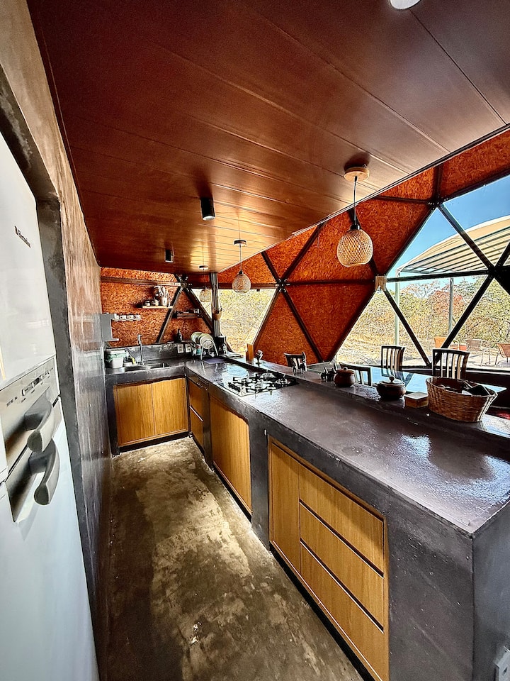 Naša luxusná geodetická kupola, inšpirovaná ubytovaním na Islande a v Japonsku, kde sa geodetické kupoly používajú na jedinečné zážitky uprostred prírody, sa nachádza na súkromnej farme obklopenej mimoriadne zachovaným Cerradom. Architektúra The Way poskytuje úplné pohrúženie sa do prírody s extrémnym pohodlím.