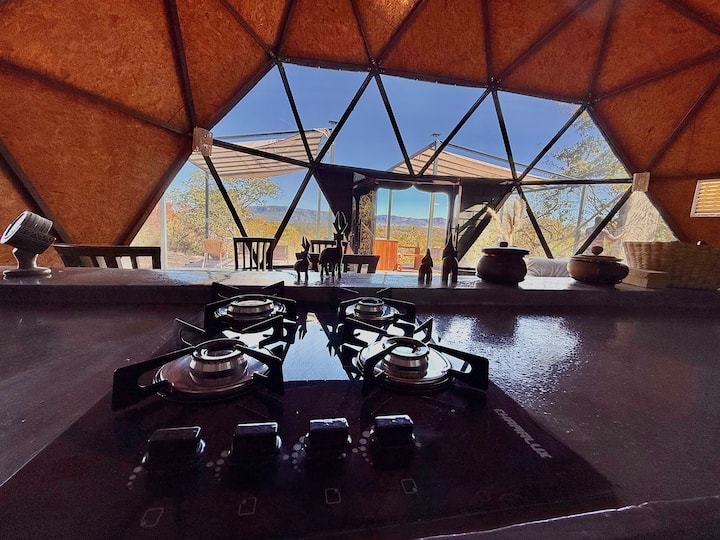 Predstavte si, že sa zobudíte so slnkom vstupujúcim do geodetického dómu, inovatívnej a futuristickej architektúry so surrealistickým výhľadom na údolie. Oddychujte vo vykurovanom vírivom bazéne a užívajte si súkromný vodopád.