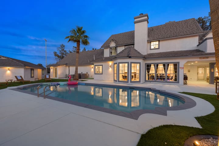 Táto priestranná luxusná vila s 8 spálňami a 5,5 kúpeľňami má plnú zábavy= bazén,posilňovňa, ihrisko na pickleball/basketbal,minigolf, divadlo - karaoke/herňa,arkád/biliardový stôl/poker/stolný futbal/AirHockey /PingPong a ĎALŠIE!Priveďte celú rodinu na toto skvelé miesto s množstvom priestoru na zábavu. Centrálne umiestnený v pokojnej,tichej štvrti. Len pár minút od Strip, kongresového centra