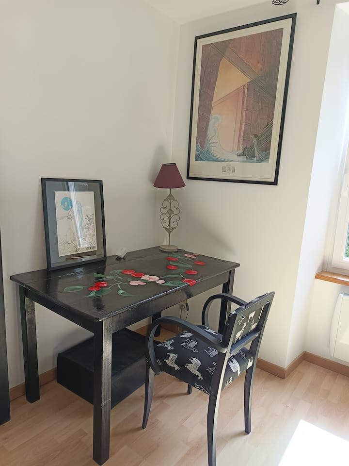 Izba s Wi-Fi, ktorá je vhodná na prácu.