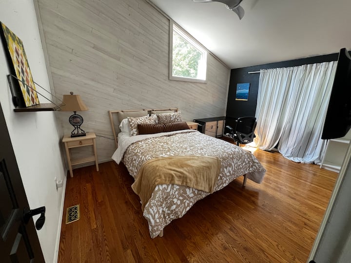 Izba s Wi-Fi, ktorá je vhodná na prácu.