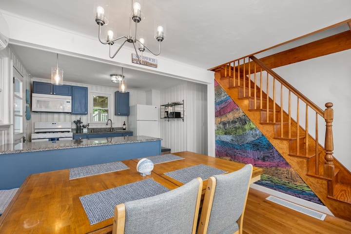Uniknite do tohto očarujúceho domu v štvrti Town Neck v Sandwich, Cape Cod. Vychutnajte si centrálnu klimatizáciu, bezplatnú bielizeň a plne vybavenú kuchyňu. Dom sa nachádza v pokojnej štvrti a ponúka jasnú jedálenskú časť a relaxačnú slnečnú miestnosť ideálnu na oddych po dni na pláži alebo po objavovaní Cape. Dom je pripravený na pláž, vybavený stoličkami, slnečníkmi a chladničkami, všetkým, čo potrebujete na dokonalý deň pri oceáne.
