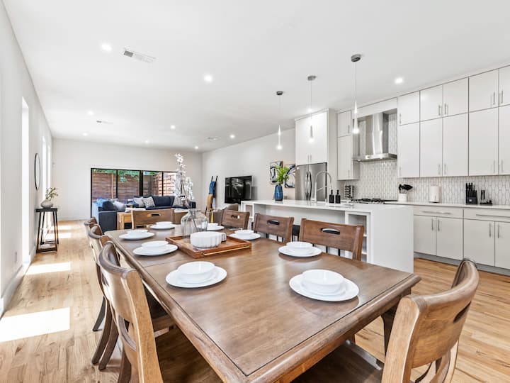 vstúpte do svojho domova mimo domova – kde sa mestské čaro stretáva s uvoľneným luxusom v srdci Starého východného Dallasu. Tento rozsiahly duplex so 6 spálňami a 5 kúpeľňami (2,5 na každej strane) ponúka viac ako 230 metrov štvorcových na jednotku (áno, je to veľa miesta) a kombinuje premyslený dizajn a moderný komfort v dvoch štýlových viacúrovňových domoch. Či už ste tu, aby ste sa znovu spojili, oslavovali, alebo len trochu oddýchli, tento priestor bol postavený pre vás, aby ste mohli robiť všetko – po svojom.