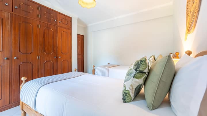 Tento 2-spálňový apartmán vo Vilamoura s rajskými plážami vo veľmi blízkej vzdialenosti je ideálny pre rodiny alebo najlepších priateľov, ktorí cestujú spolu do Algarve. Je dobre vybavený všetkým, čo by ste si mohli počas pobytu priať, ako sú ventilátory, bezplatné Wi-Fi, káblová televízia, plne vybavená kuchyňa, priestranný balkón, kde si môžete vychutnať chutné jedlo alebo pohár vína večer, a prístup k spoločnému vonkajšiemu bazénu.